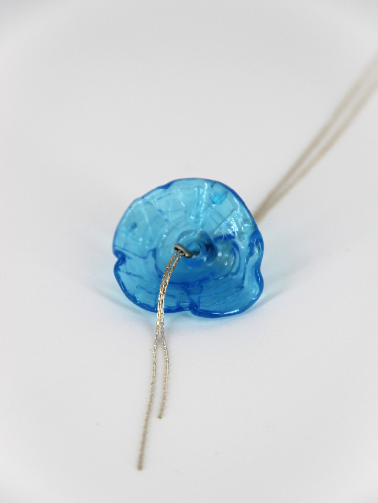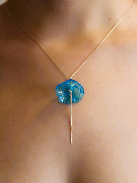 This elegant handmade necklace features a delicate sterling 925 silver chain, adorned with a beautiful blue lampwork glass flower bead. The intricate flower bead, crafted through the art of lampwork, serves as the centerpiece of the necklace, adding a touch of uniqueness and elegance to the piece. The combination of the high-quality silver and the artistic glasswork makes this necklace a perfect accessory for any occasion.